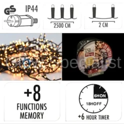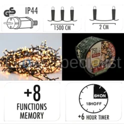 LED CLUSTERVERLICHTING – 1250 LAMPJES – EXTRA WARM WIT – MET 8 LICHTFUNCTIES EN TIMER