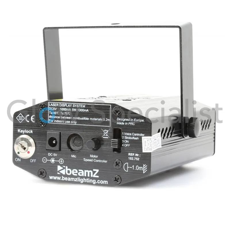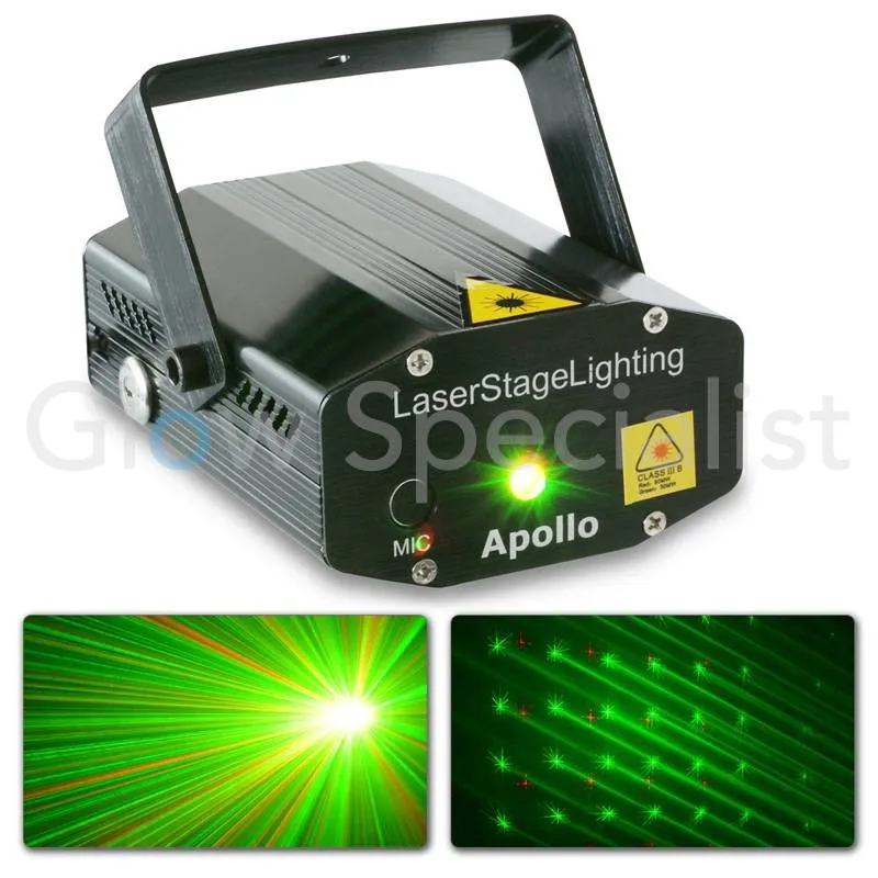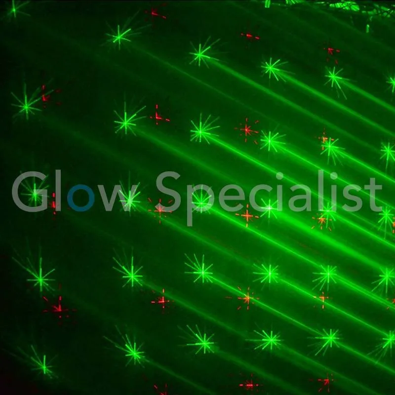 Een compacte klasse 3B mini-laser die een regelbaar sterrenhemel-effect creëert in de kleuren rood en groen. Geschikt voor bars, thuisgebruik, etc.