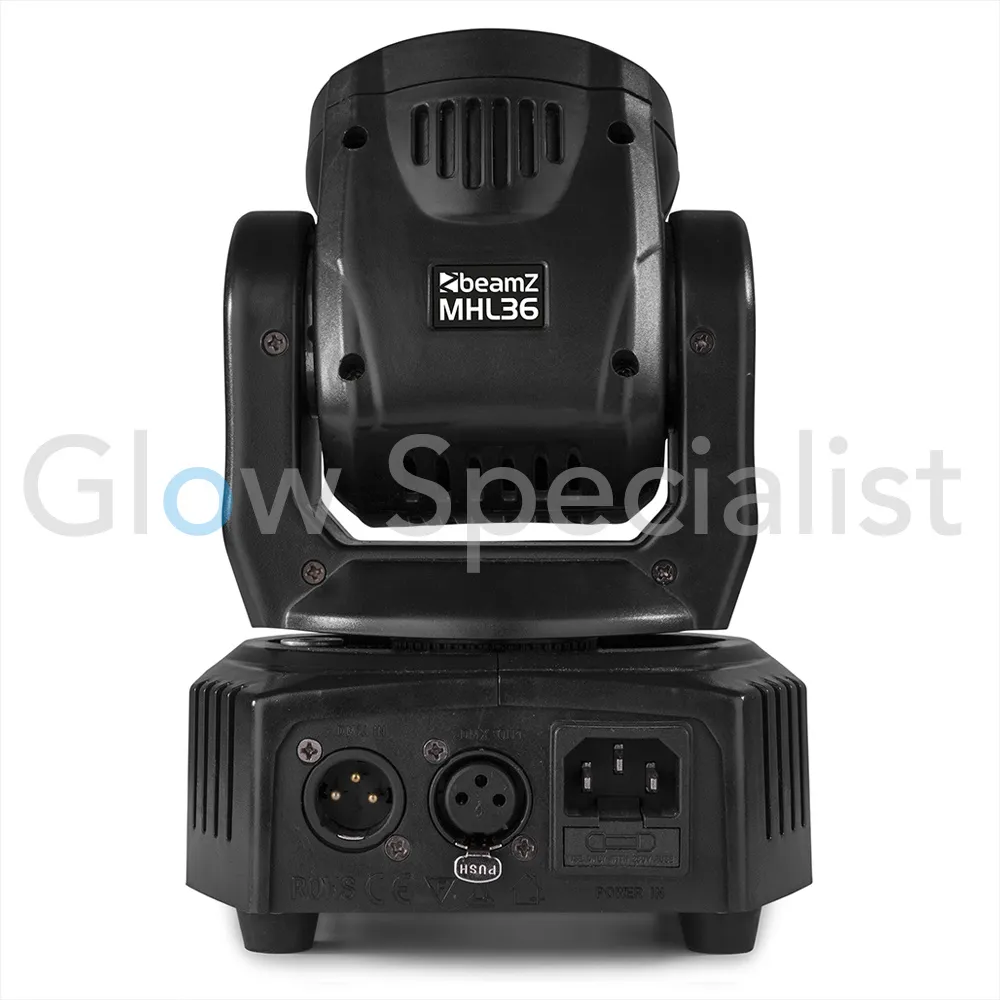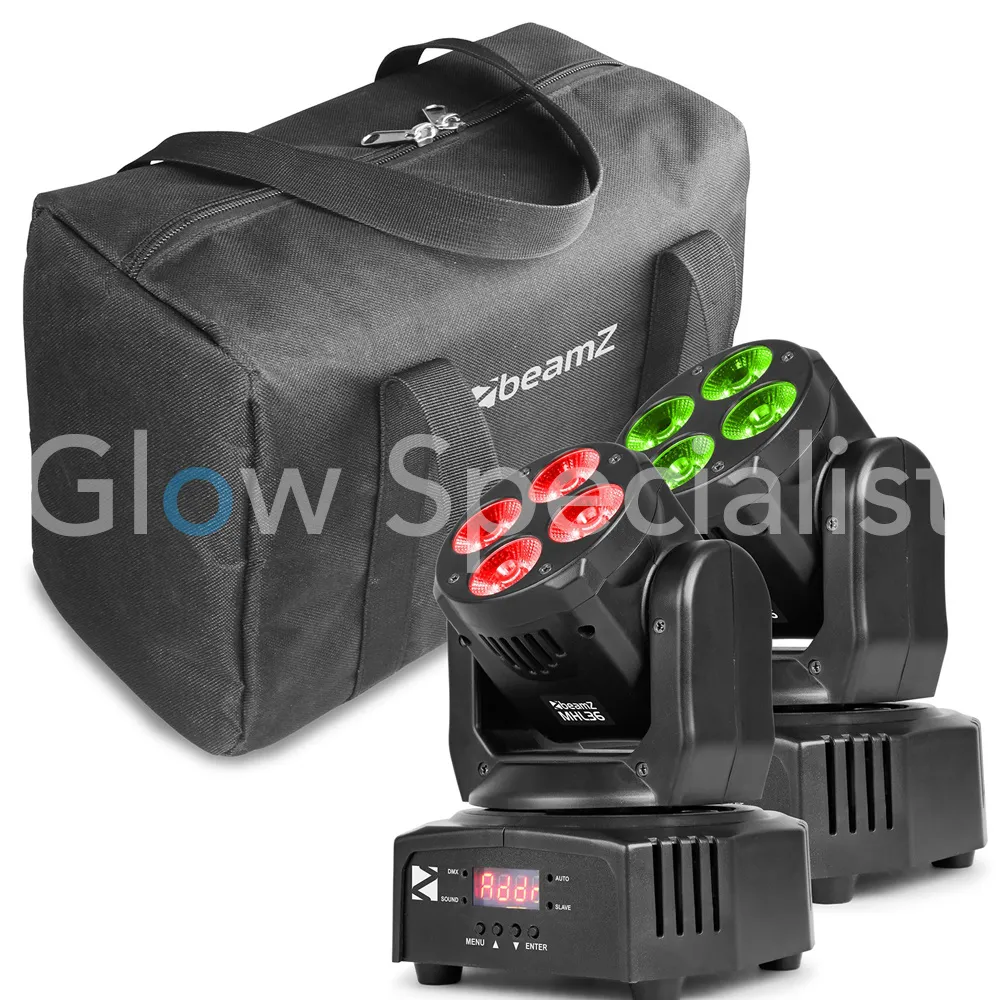 Set van 2 zeer compacte LED moving heads, uitgevoerd met 4x 9W 4-in-1 LED’s voor extreem hoge lichtopbrengst. De MHL36 produceert een verbluffende lichtshow door middel van de perfecte Colour Mix. Deze MHL36 heeft een 26° beam angle, 14 en 16-kanaals DMX-modus, kleuren strobe, en een elektronische dimmer. Super compact en super snel! (extreem snelle 540° Pan en 180° Tilt beweging). De set word geleverd met 2 MHL36 moving heads in een handige BeamZ soft bag.