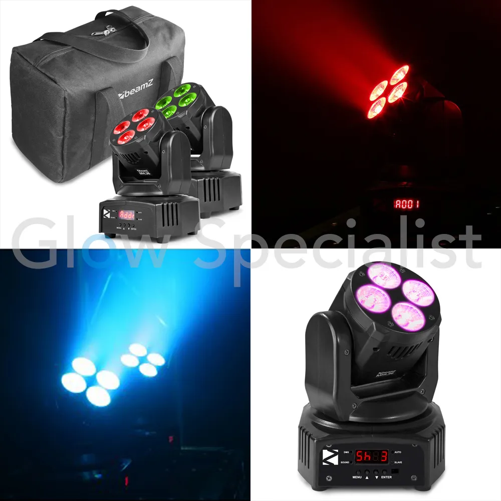 Makkelijk in gebruik voor de niet professionele gebruiker of juist helemaal aan te sturen via DMX voor de pro’s. De 4x 9 watt LED’s geven een mooie felle bundel die zeker bij het gebruik van een rookkanon een mooi effect geven. De nylon tas is makkelijk om ze te vervoeren al zijn ze in een flightcase beter beschermt.