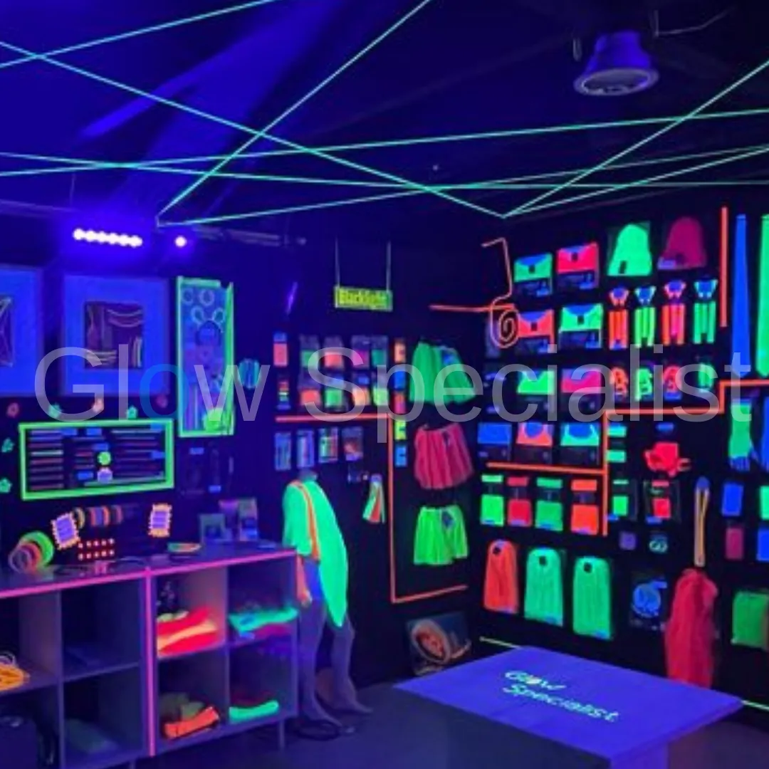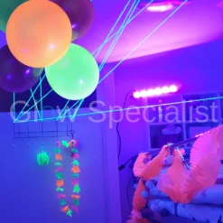 Instapmodel UV Led bar. Met twee lampen van dit formaat kun je een kleine woonkamer of escape room aardig verlichten. Hang ze hoog aan beide kanten van de ruimte en richt ze naar beneden voor het beste effect. Hoe donkerder de ruimte, hoe beter het UV effect. Voor grotere ruimtes hebben we grotere formaten.