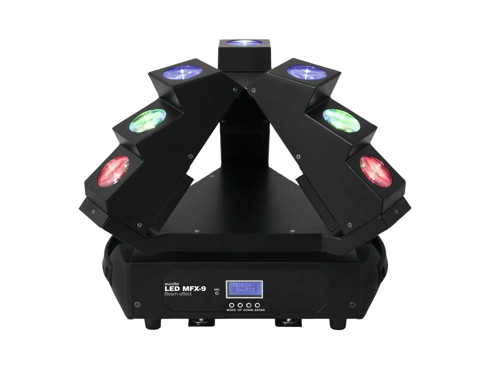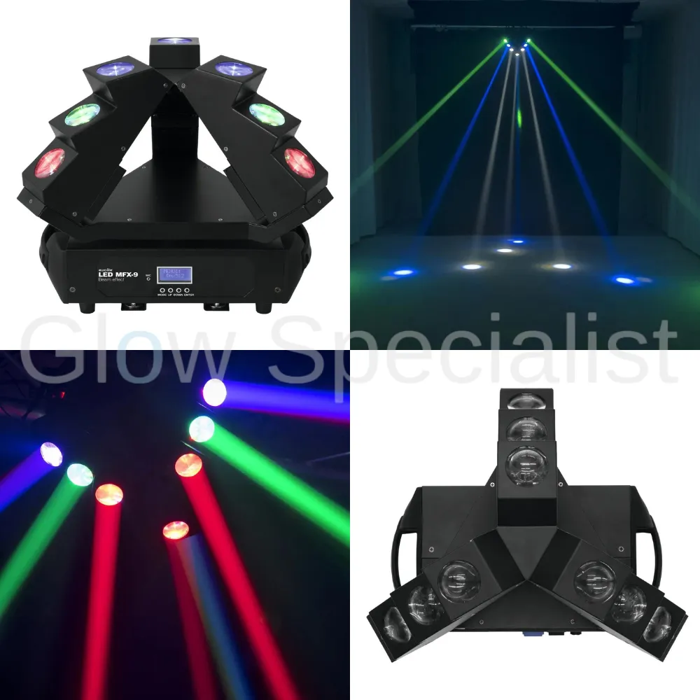 Eurolite LED MFX-9 Beam Effect, Beam pyramide met oneindige Pan draaibewegingen en 9 Quadcolor LEDS.