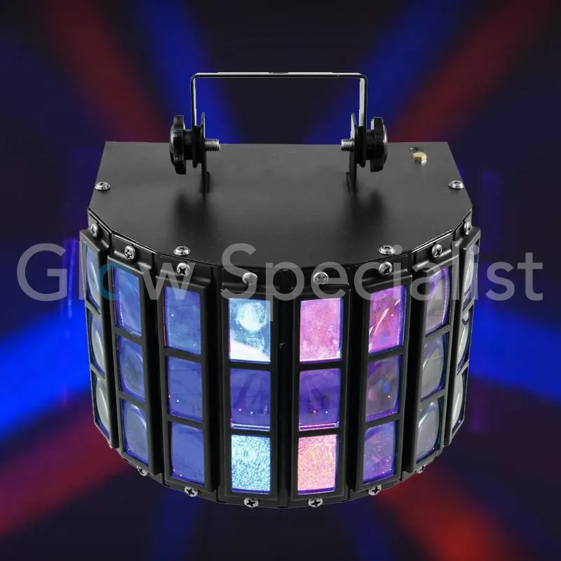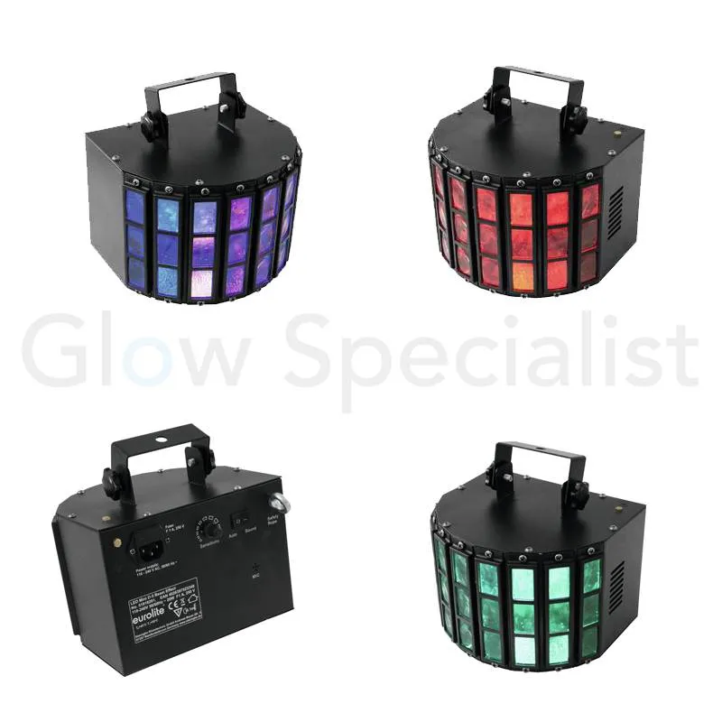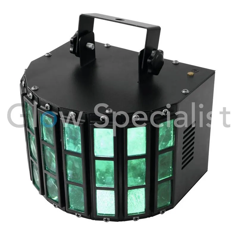- Met 6 x 3 W LED’s: 2 x rood, 1 x groen, 1 x blauw, 1 x amber, 1 x wit