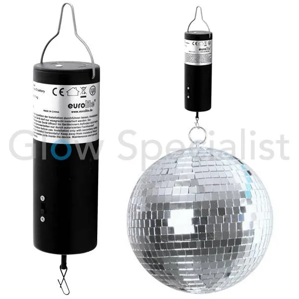 Wanneer u een kleine spiegelbol wilt ophangen, bijvoorbeeld in uw woonkamer of op de kinderkamer is het niet zo mooi om lange stroomdraden te leggen naar een stopcontact. Deze spiegelbolmotor werkt op batterijen en kan daardoor overal opgehangen worden, zonder lelijke draden in het zicht.