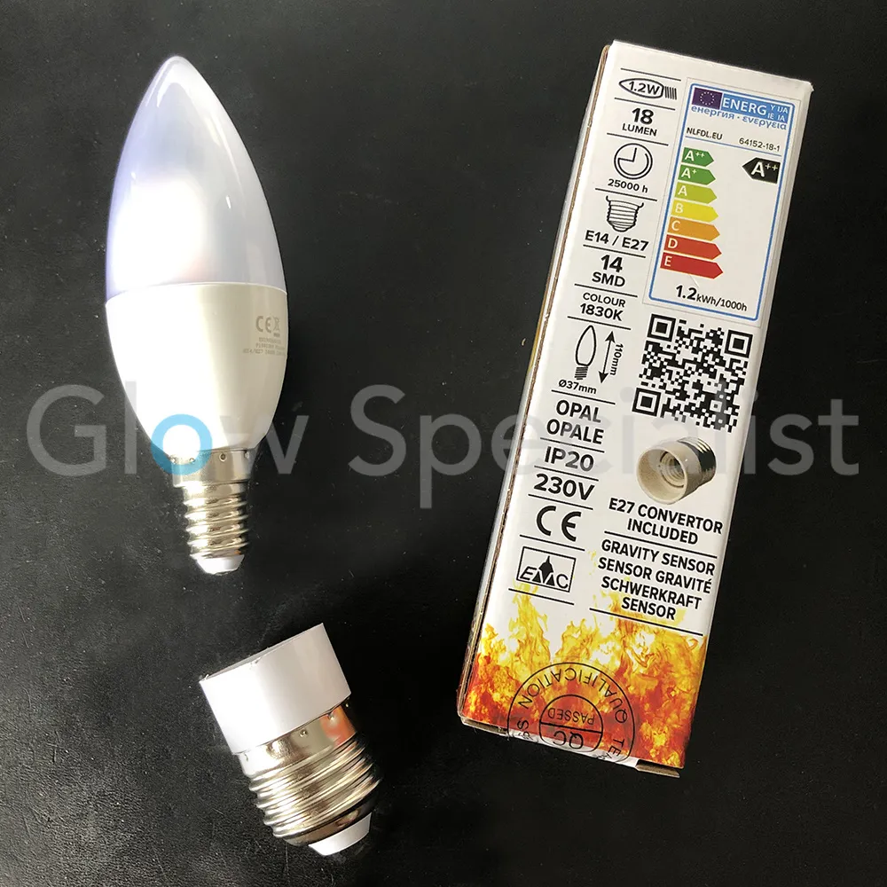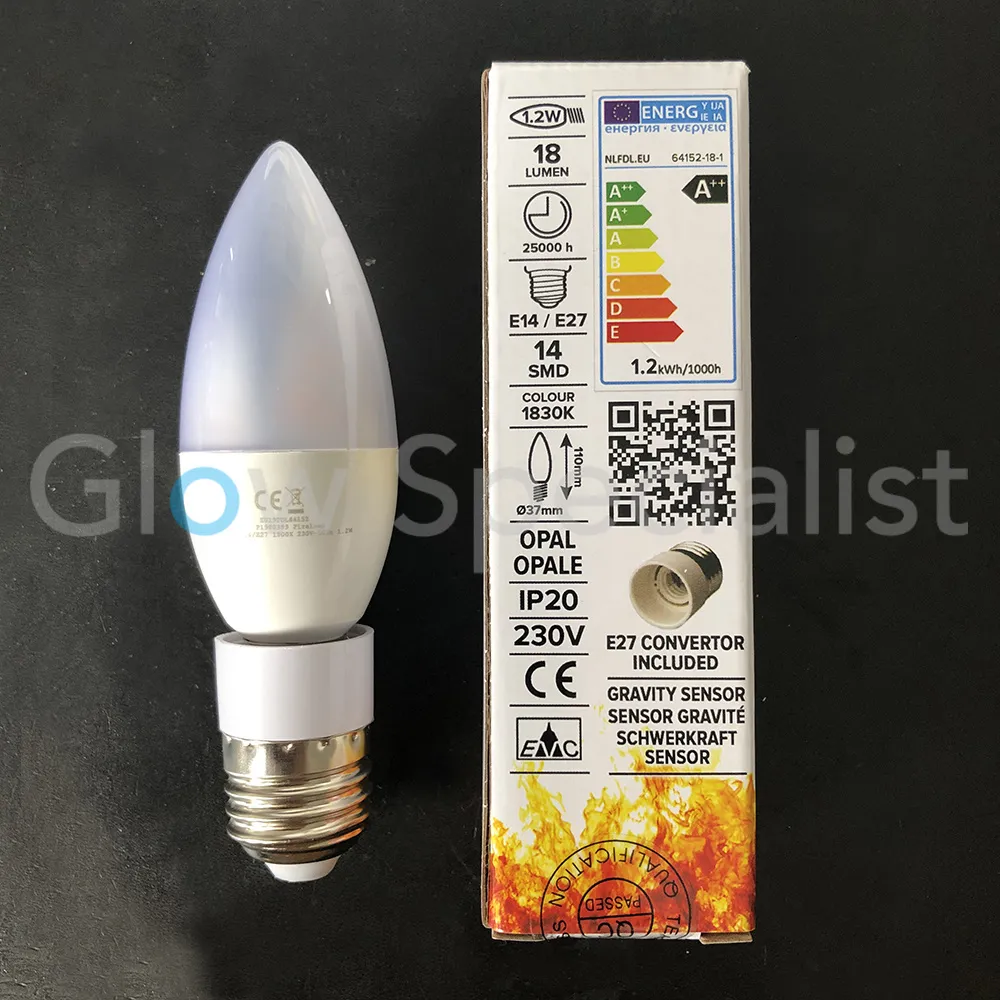 FIRELAMP⢠FLAME 1.2W – 18 LUMEN – E14/27 – 14 SMD – 1830K – OPAL