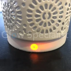 Deze lamp in tafelmodel wordt geleverd met een crèmekleurige of zwarte decoratieve metalen houder met daarin een opgewerkt patroon waar het warme licht heel sfeervol doorheen schijnt. Je kunt de metalen houder over de lamp heen plaatsen en op de tafel zetten (of waar je maar wilt), maar je kunt de lamp ook zonder de metalen houder/kap plaatsen in bijvoorbeeld een lantaarn of pot, dankzij de zwaartekracht-sensor past de vlam zich aan aan de positie waarin geplaatst.