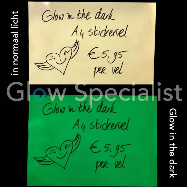 Perfect om woorden of figuren uit te knippen of om teksten op te drukken die je wilt laten opvallen in het donker. Ook te gebruiken voor je glow in the dark kunstobject.