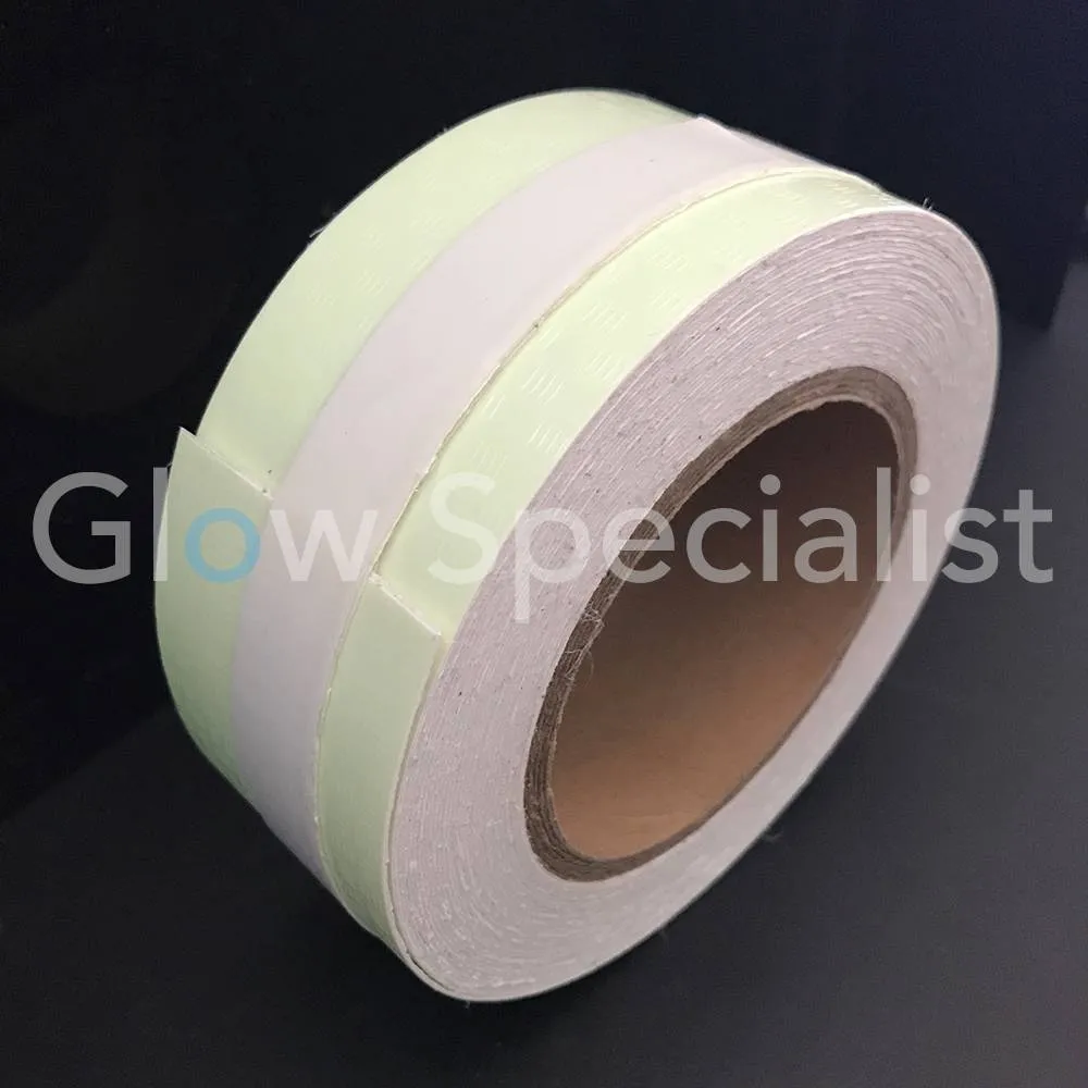 Met de lichtgevende tape (fotoluminescent) kunnen glow-in-the-darkbelijningen worden gerealiseerd. In het licht is de belijning wit, maar als het donker is geeft de tape groen licht. Voorzien van een anti-sliptoplaag.