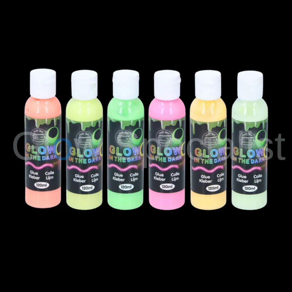 SET VAN 6 FLESJES GLOW IN THE DARK LIJM