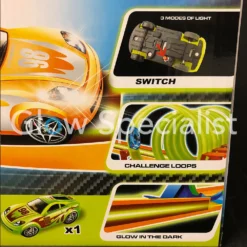 Deze Glow in te dark racebaan bestaat uit 21 delen inclusief een auto met Led verlichting. Door de flexibele delen kun je hier een mooie baan mee maken in verschillende bochten.