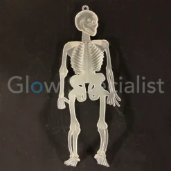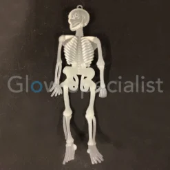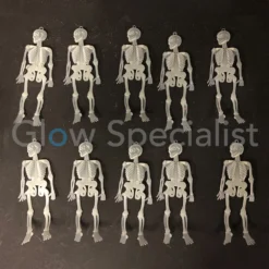 Leuk als Halloween decoratie of als uitdeelcadeautje, of om in de kinderkamer op te hangen. De 8 witte skeletten met rode ogen zijn van kunststof en zijn ca. 15 cm lang. Aan de bovenkant zit een oogje waarmee ze makkelijk kunnen worden opgehangen. De skeletten nemen daglicht en kunstlicht op en geven licht af in het donker.