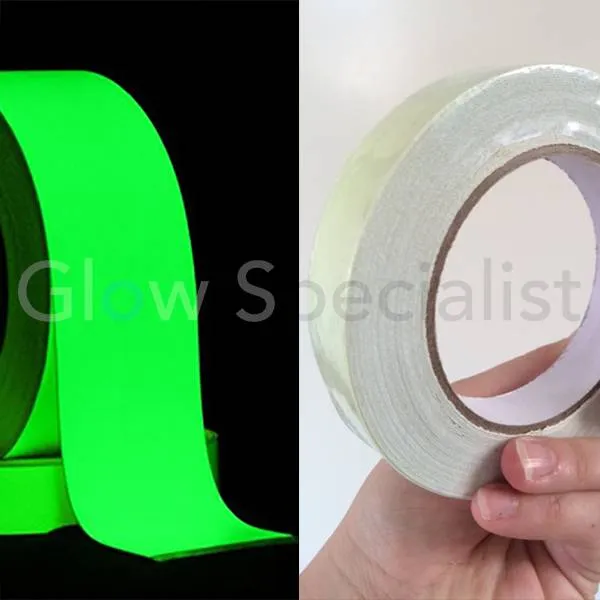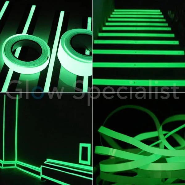 Deze zelfklevende Fotoluminescente (glow in the dark) tape absorbeert en slaat het licht op van elke lichtbron (natuurlijk, fluorescent, gloeilamp, halogeen enz. ..).