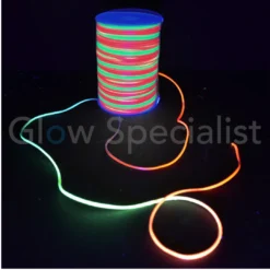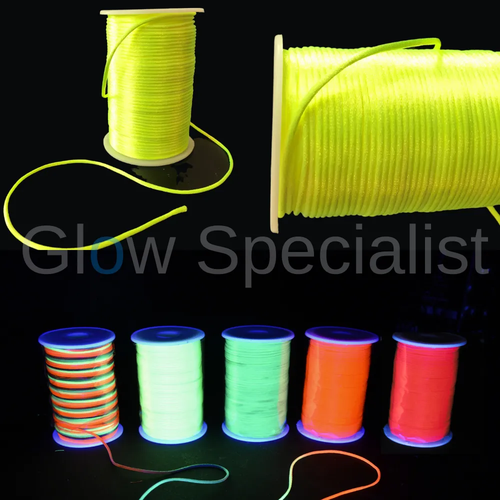 Semi glanzend koord van nylon (2 mm dik) dat oplicht onder UV-licht / blacklight. Zeer decoratief te gebruiken voor o.a. armbandjes, jassen, truien, rugzakken, knikkerzakjes, macrame enz. Ook leuk als decoratiemateriaal op een glow party of blacklight feest.