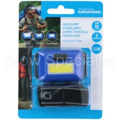 Handige hoofdlamp met veel lichtopbrengst (80 lumen). Dit hoofdlampje van 2 Watt heeft 3 lichtfuncties: fel / standaard / knipperend. Het is voorzien van een verstelbare hoofdband en werkt op 3 AAA batterijen (niet meegeleverd). Het artikel wordt assorti geleverd in blauw of zwart, beide met zwarte hoofdband. De hoofdband doe je rond je hoofd en stelt hem zelf af zodat hij goed blijft zitten.