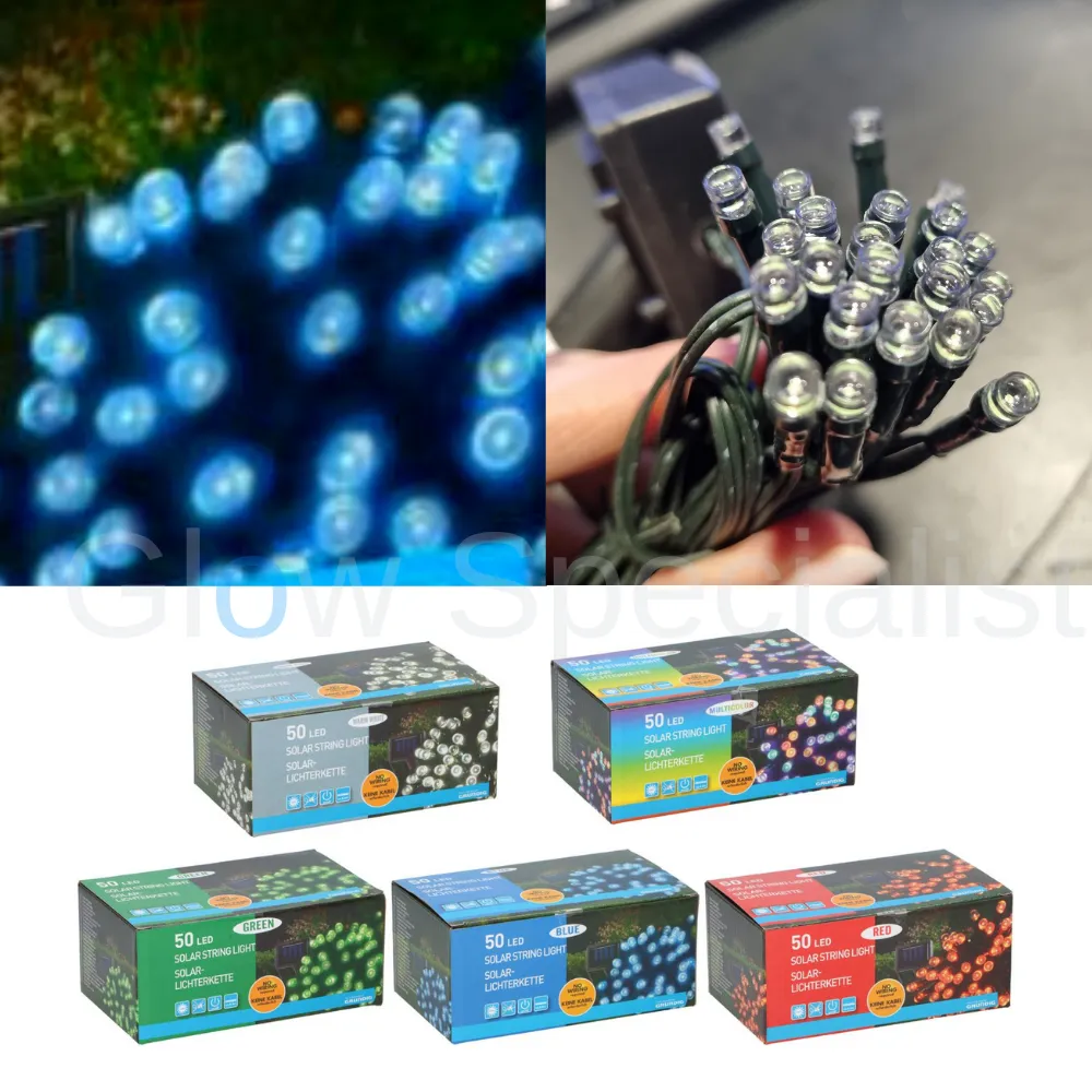 Sfeervolle lampjes op zonne-energie voor in je tuin of op je balkon. Het lichtsnoer van 6,4 m is voorzien van 50 kleine led-lampjes. Je kunt kiezen uit alle lampjes in één kleur (keuze uit groen, blauw, rood of wit) of allemaal verschillende lampjes aan één snoer (Multicolor).