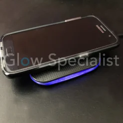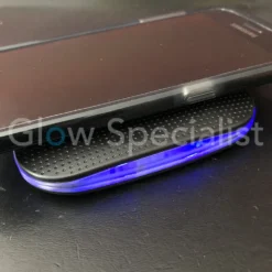 - Plaats jouw Qi-compatibele telefoon op het laadblok. De telefoon zal onmiddellijk draadloos worden geladen en de intensiteit van het blauwe licht rondom de eenheid zal automatisch veranderen.