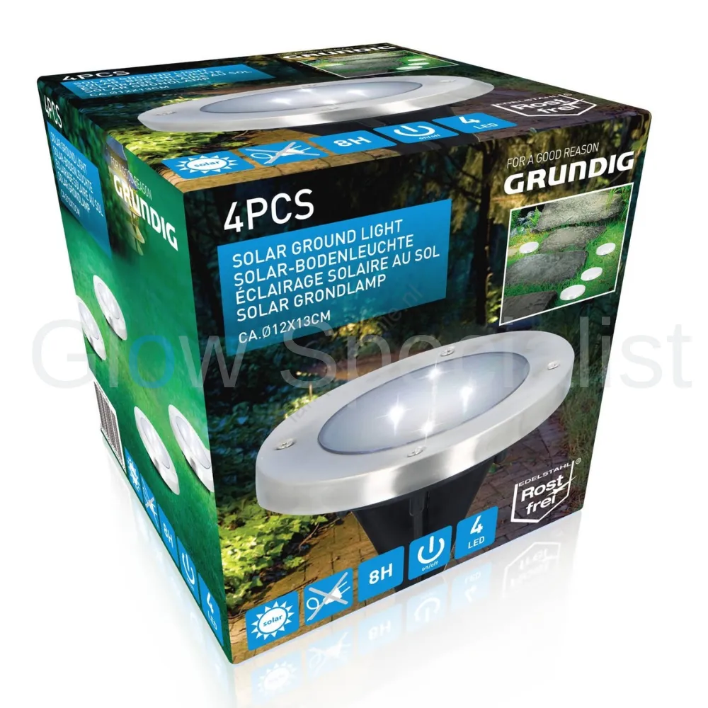Heb je geen elektriciteit in je tuin maar wil je je wel tuinverlichting? Of wil je op een milieuvriendelijke manier je tuin verlichten? Dan is deze 4-delige set iets voor jou. De set van Grundig bestaat uit 4 ronde lampjes met grondpen, die je eenvoudig in je tuingrond kan steken. Zo verlicht je bepaalde hoekjes, of licht je een mooie boom of plant uit.