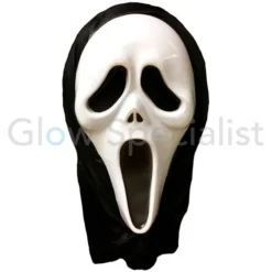 Scream, wie kent de bekende filmserie niet? De filmreeks Scream is de teen slasher film van de midden jaren 90. Met deze enge maskers jaag je iedereen de stuipen op het lijf! Het masker is gemaakt van plastic en er zit een zwart doek aan de zijkant/achterkant om over je hoofd te trekken.