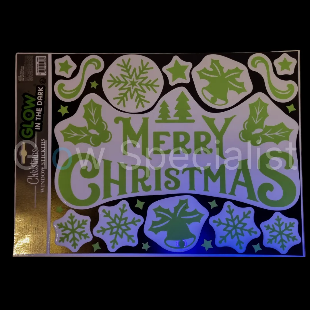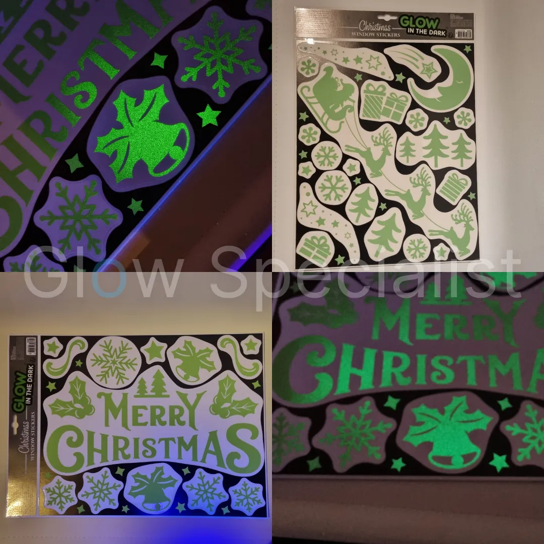 GLOW IN THE DARK RAAMSTICKERS IN KERST THEMA