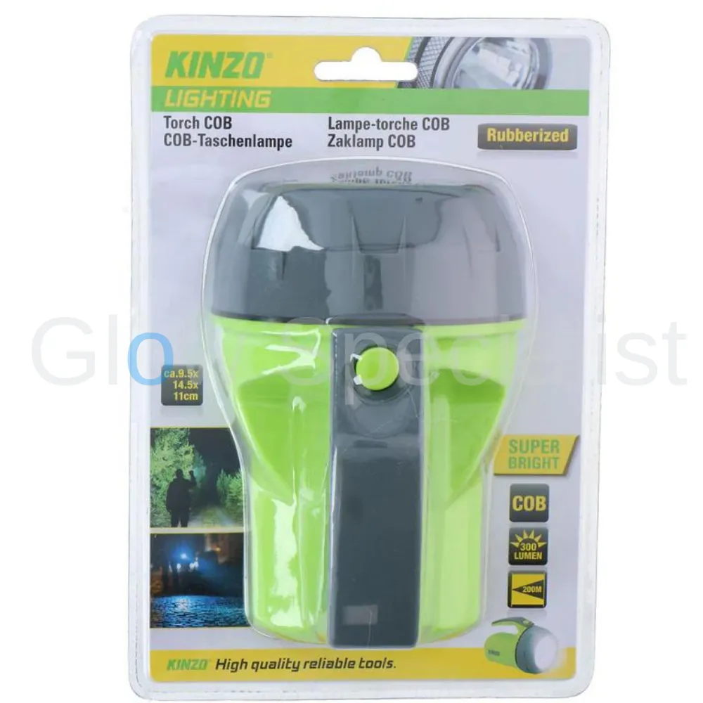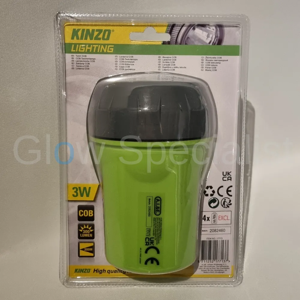 De cob zaklamp geeft 300 lumen licht en werkt op 4 x AA batterijen (niet meegeleverd). De fel groene kleur zorgt ervoor dat hij goed zichtbaar is. Handige zaklamp voor in de schuur, tijdens kamperen, nachtwandelingen (hikes) of bij stroomuitval.