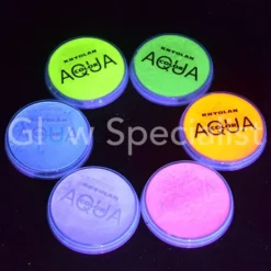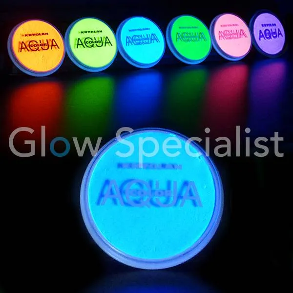 De perfecte blacklight waterverf voor een professioneel resultaat. Wil je een zeer mooi resultaat dan hebben wij het perfecte blacklight product voor je. Je kunt de aqua color aanbrengen met een vochtig sponsje of penseel. De paint droogt vrij snel op. Bij normaal licht al een mooie kleur, bij blacklight een lichtgevend effect!