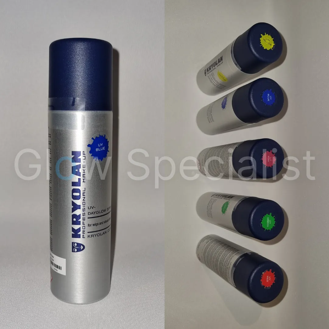 Deze haarspray van Kryolan heeft bij daglicht een felle neonkleur en licht op bij UV licht / blacklight.