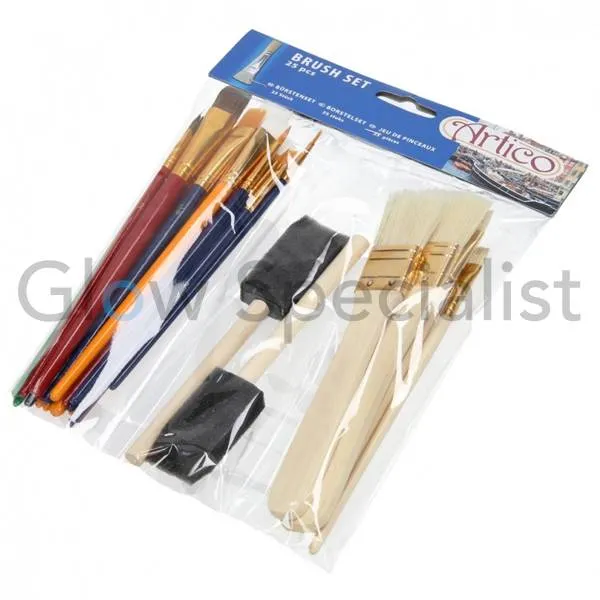 Ga je binnenkort aan de slag met onze bodypaint, glow in the dark of blacklight verf? Bestel dan meteen deze kwastenset mee. En met deze 25-delige kwastenset heb je altijd de juist kwast bij de hand.
