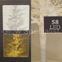 De boom is 90 cm hoog, dus een mooi maatje. De flexibele, plastic takken in witte kleur, kun je in de gewenste positie buigen. De 58 warm witte leds laten het boompje in het donker prachtig oplichten.