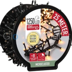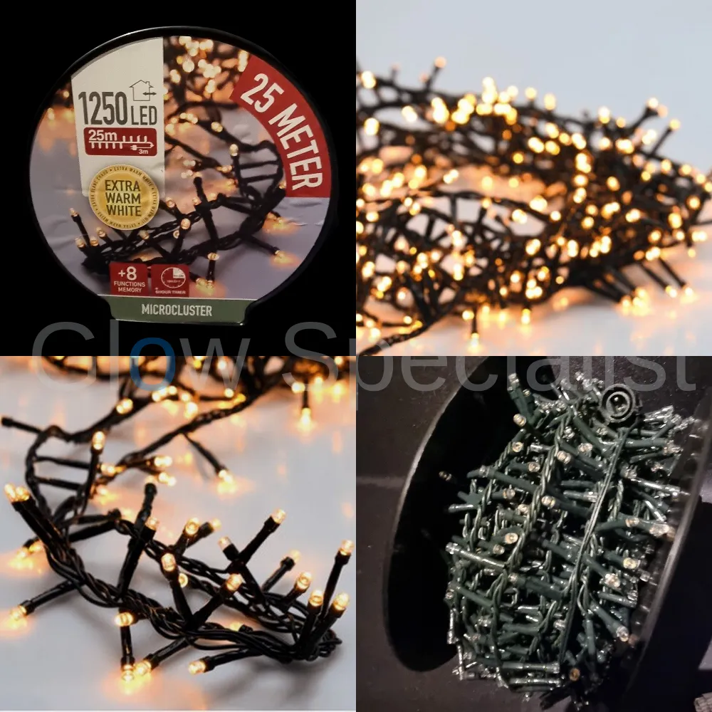 LED Clusterverlichting 25m – extra warm wit – met 1250 lampjes met 8 lichtfuncties en timer – IP44