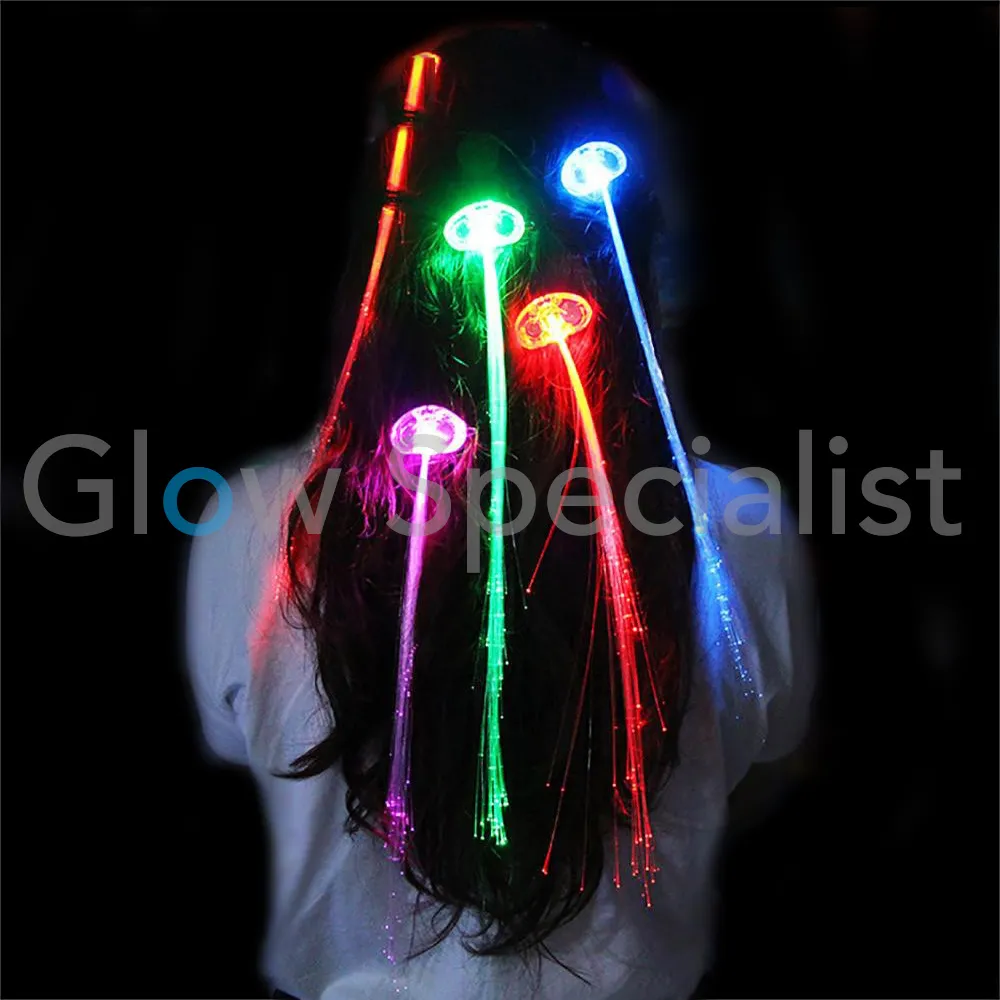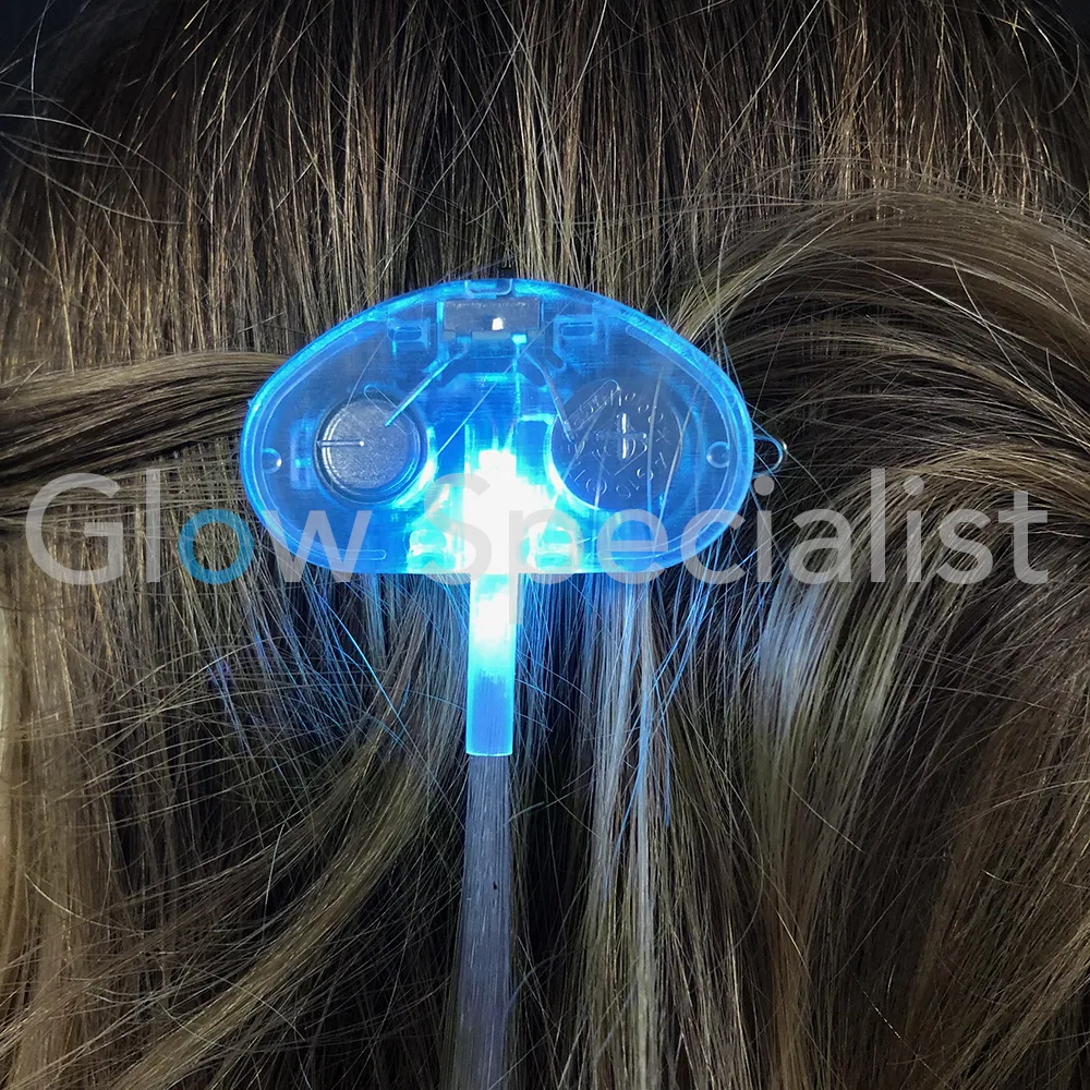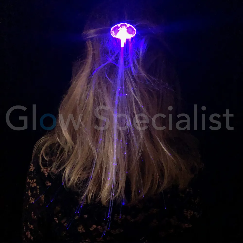 Haarspeld met lichtgevende, knipperende, gekleurde fiber draden