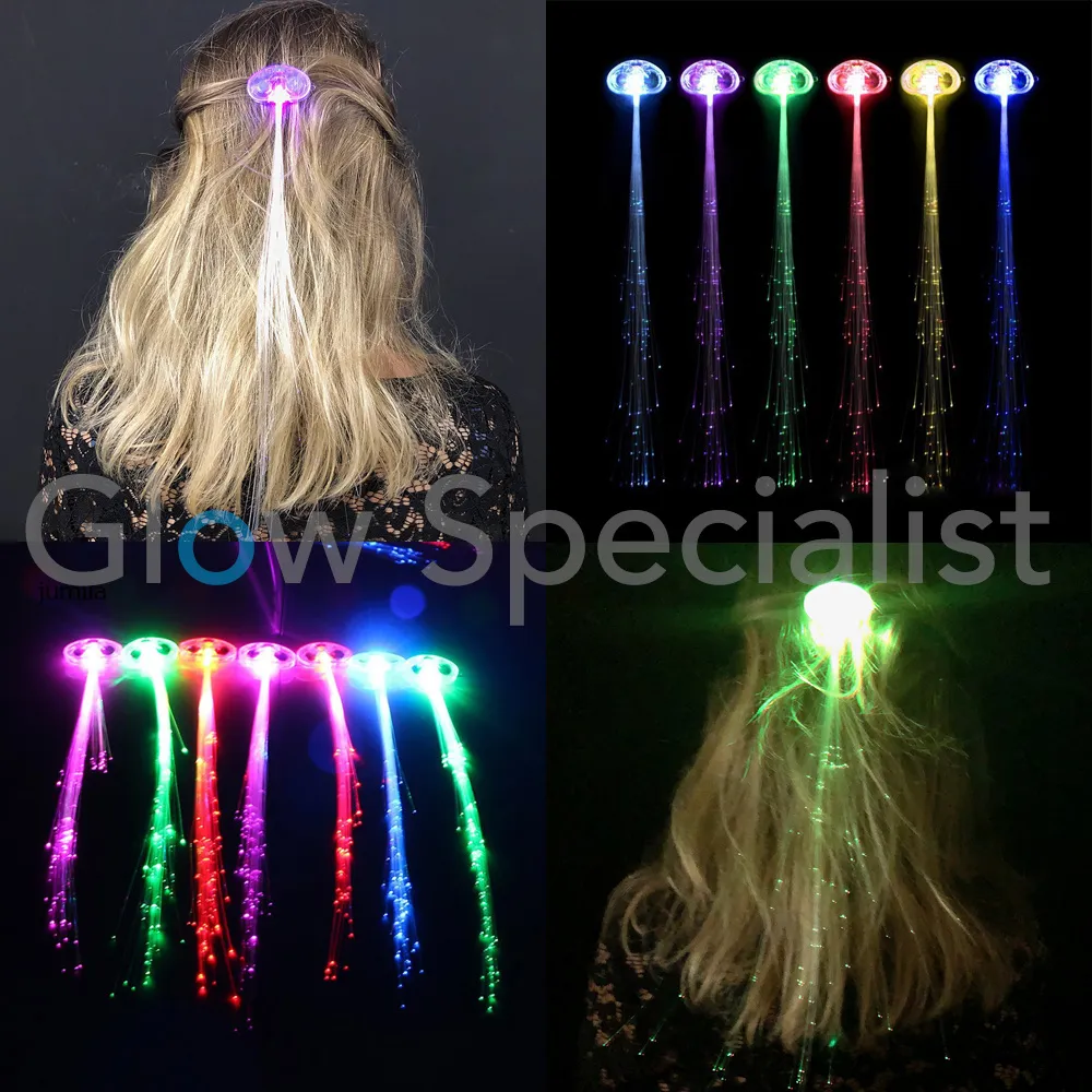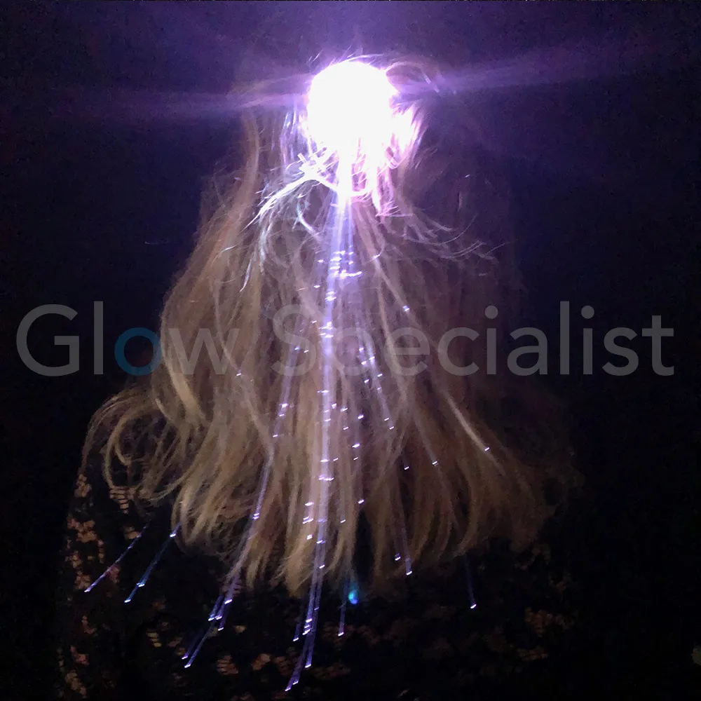 Weer terug van weggeweest! Deze opvallende haarspeld met lichtgevende, knipperende, van kleur veranderende fiberdraden.