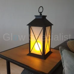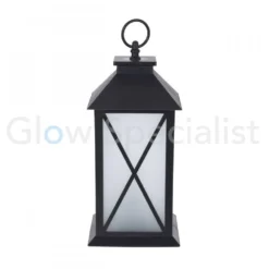 Deze moderne lantaarn heeft een frame met een kruisvorm erin en de afmetingen zijn: 28 x 14 x 14 cm. Je kunt ‘m met een knopje activeren of kiezen voor de ingebouwde timerfunctie. Hierbij brandt de LED verlichting na inschakelen gedurende 6 uur, waarna hij automatisch uitschakelt.