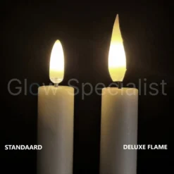 We hadden al deze prachtige decoratieve LED kaarsen met zeer realistische uitstraling in ons assortiment. Nu zijn de kaarsen er ook in een nieuwe versie, deze ‘Deluxe Flame’ met een nog realistischere vlam. En behalve in het ivoor, nu ook in het wit.