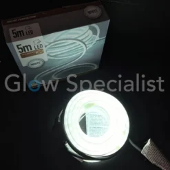 Deze lichtslang onderscheidt zich van onze andere lichtslangen die we voorheen verkochten, doordat de vorm van de slang anders is. De slang is rechthoekig/plat in plaats van rond en is nog flexibeler dan de andere lichtslangen. Aan de boven- en onderkant zit een witte streep/baan over de lengte waardoor de slang aan de zijkanten oplicht. Dit zorgt er ook voor dat je de lichtslang makkelijker ergens tegenaan kunt monteren. En in plaats van kleine lichtpuntjes verlicht deze slang extra fel over de hele lengte.