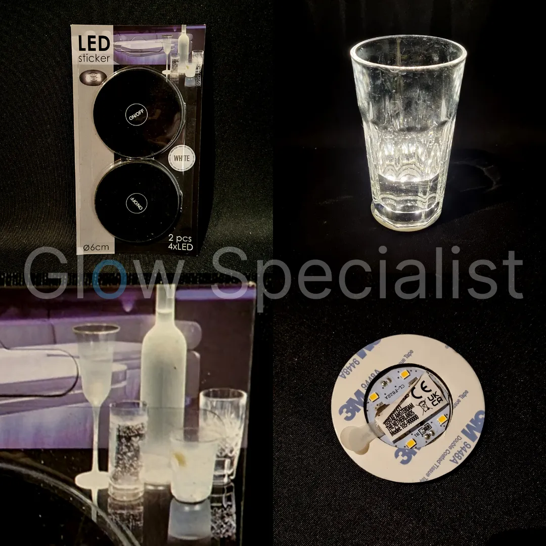 Heb je binnenkort een feestje en wil je het origineel aankleden met mooie verlichting op tafel? Dan zijn deze lichtgevende led stickers de party-hit! Creëer een unieke sfeer tijdens je party door deze LED stickers onder je glazen of flessen te plakken. Je drankje wordt omgetoverd in een stralende, lichtgevende vloeistof. En als je drankje op is, geeft je glas nog steeds licht.