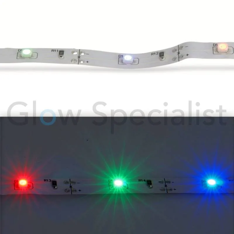 Deze multicolor led strip zorgt voor verlichting in verschillende kleuren bij jou in huis. De ledjes hebben de kleuren rood, groen en blauw. De strip is zelfklevend en kan eenvoudig op de gewenste plaats worden geplakt. Denk hierbij aan het plaatsen onder een kastje in de woonkamer, keuken of badkamer.