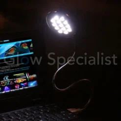Klein genoeg om overal mee naartoe nemen. Het lampje heeft een roestvrij stalen flexibele hals die u kunt buigen in elke gewenste positie. Sluit hem gewoon aan op een usb-poort en hij licht direct op.