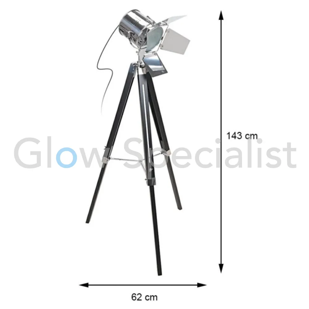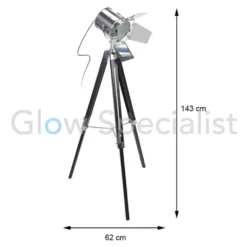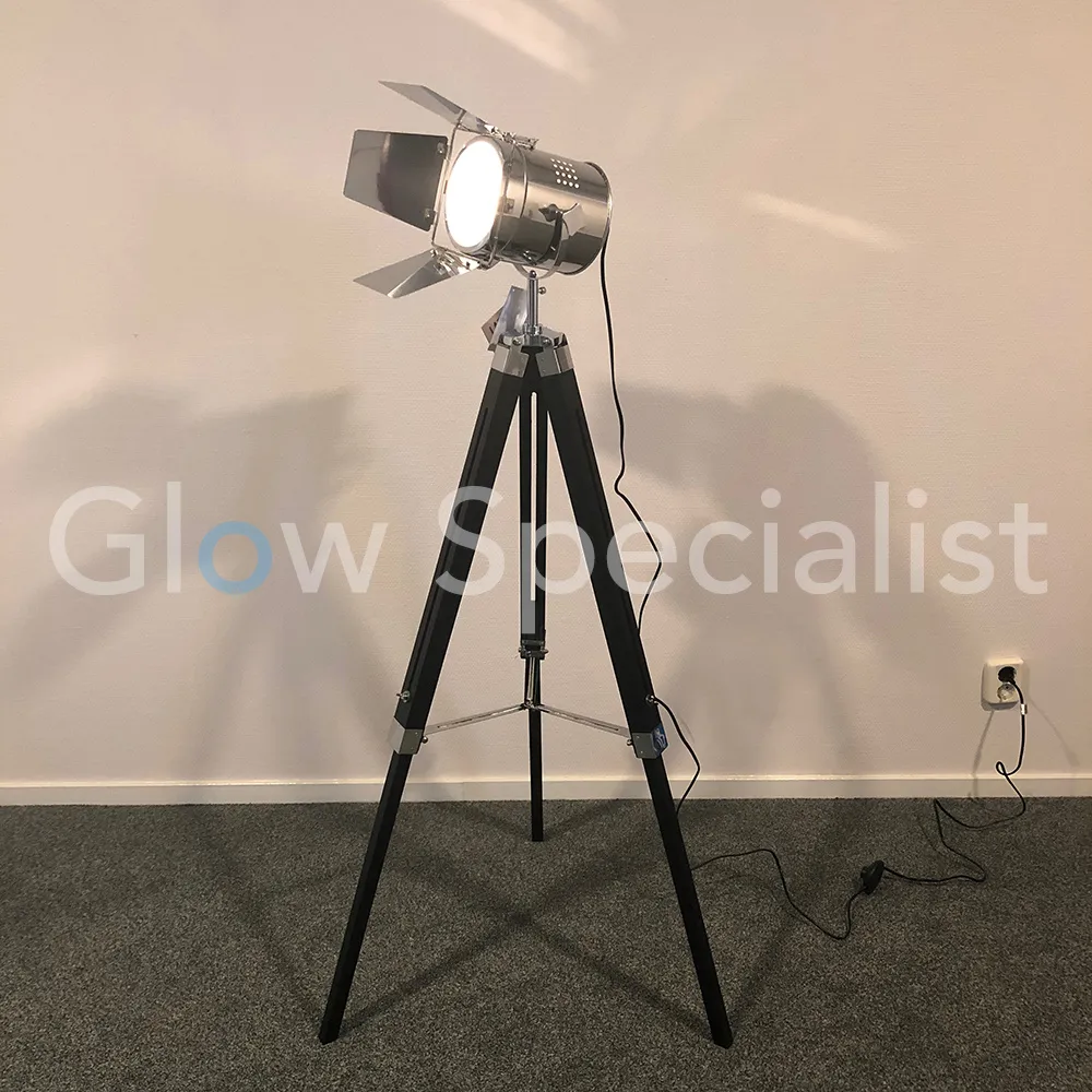 MODERNE ‘FILMSTUDIO’ STATIEFLAMP – 143 CM – ZWART MET ZILVER