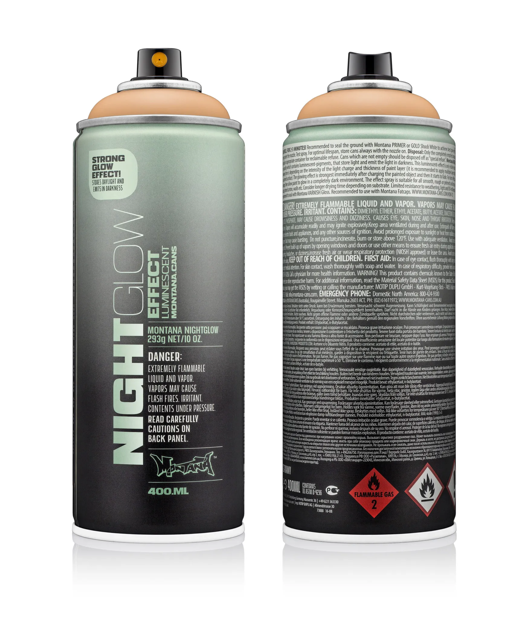 De nieuwe verbeterde Montana NIGHTGLOW NG1000, is een hoge druk, hoogwaardige verf op nitro-acrylbasis. Montana Cans is het graffiti merk voor echte liefhebbers.