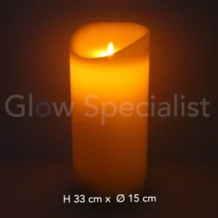 Dit is het grootste formaat LED kaars in de MovinFlame reeks. Je kunt hem op de grond plaatsen, op een tafel, vensterbank, met of zonder kandelaar. Door de grootte is het een opvallende verschijning.