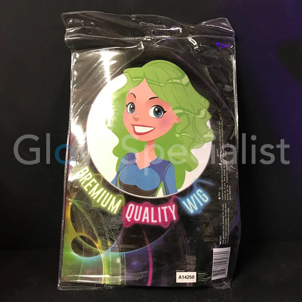 NEON GROENE PRUIK – LANG KRULLEND HAAR MET PONY