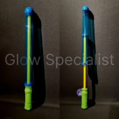 Grote water spuiter die oplicht bij blacklight. Door de mond van de shooter in water te steken kun je water opzuigen door het handvat naar achteren te trekken. Heer lijk voor de hete zomerdagen deze water shooter die ook zonder blacklight leuk is om te gebruiken. Zorg dat hij vol met water komt en loop op je doel af. Schieten maar!