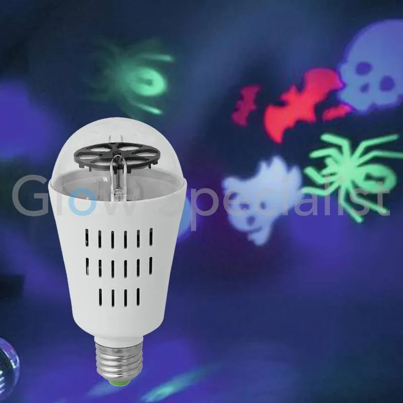 De nieuwe lichteffect lamp ‘HALLOWEEN’: schroef de lamp eenvoudig in een staande of hangende lamp, zet hem aan en geniet direct van een spooky halloween sfeer met heldere kleuren in uw kamer. Het is een energiebesparende LED-lamp die een unieke lichtshow met enge halloween figuren creëert.