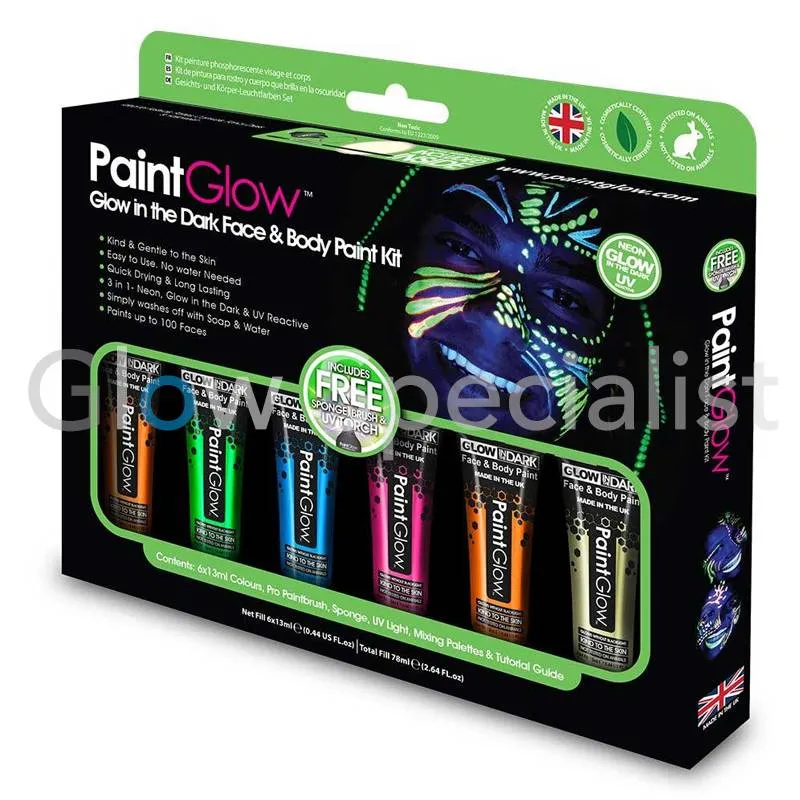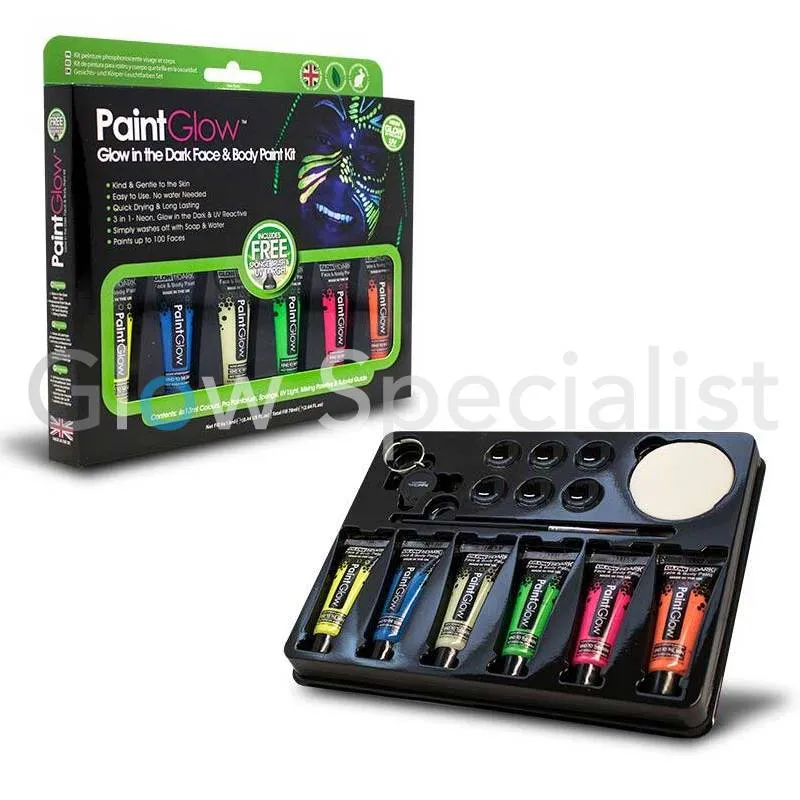 PAINTGLOW 3-in-1 Neon, Glow in the dark & UV Reactief – 6 tubes