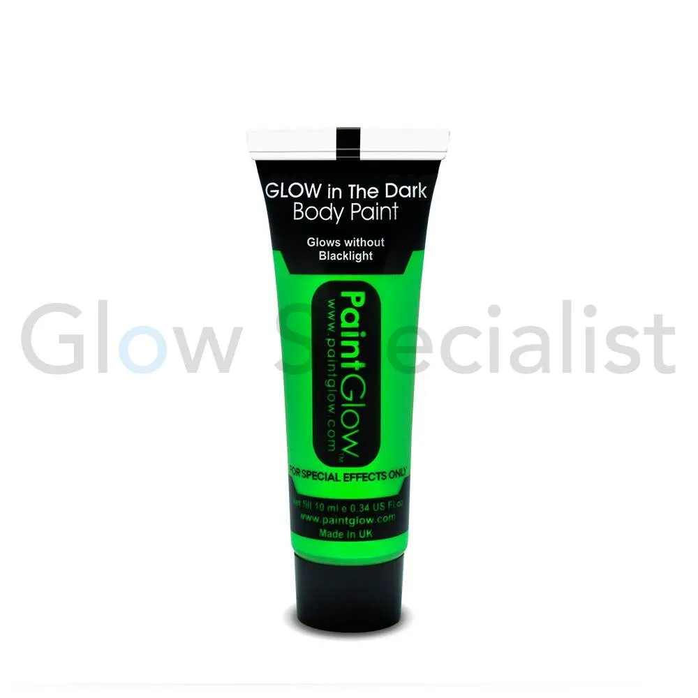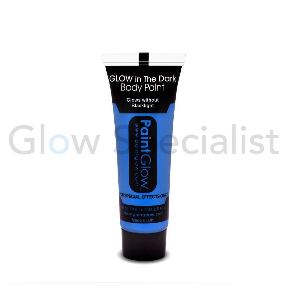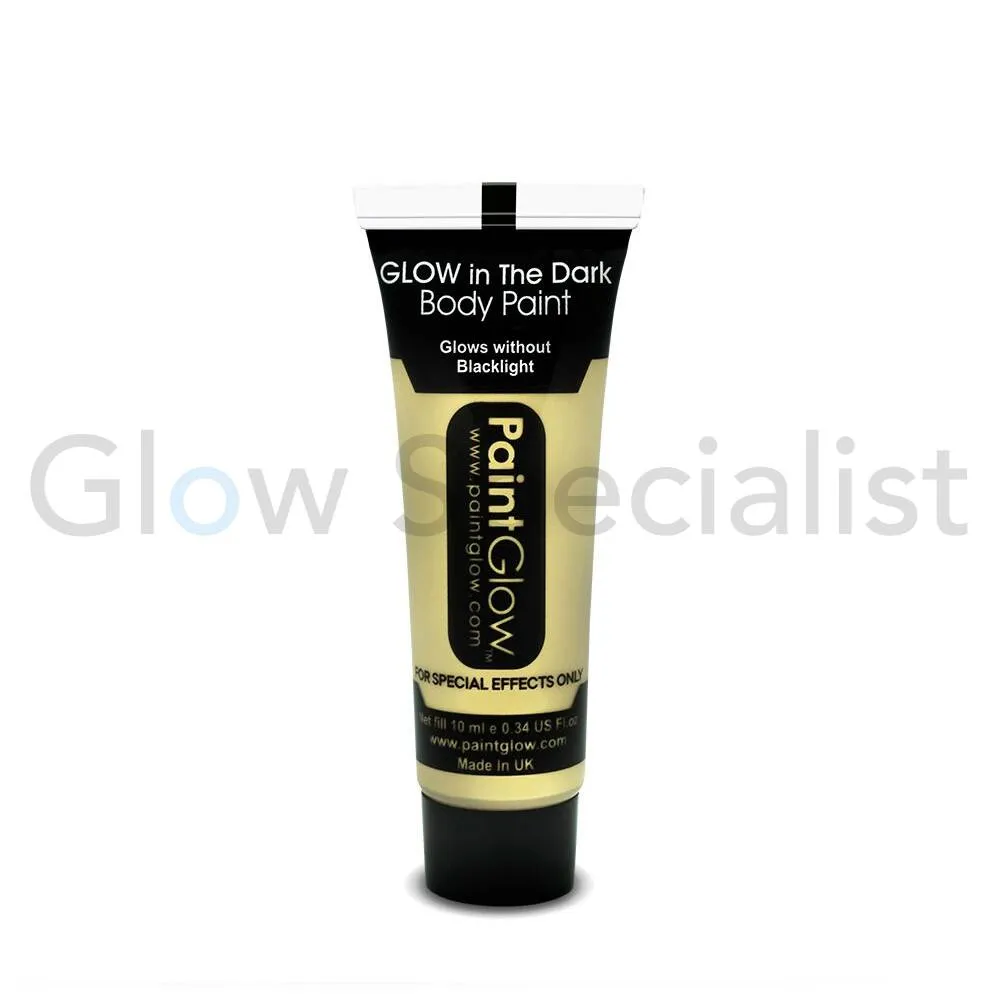 Alle kleuren lichten op in het donker, ook zonder UV/blacklight. Wanneer je op een feest bent en de blacklights en andere lampen gaan uit, blijft de bodypaint een paar minuten licht geven.
