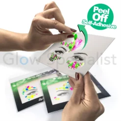 Leuke, originele gezichtsjuwelen die oplichten in het donker. Deze glow in the dark UV reactieve face jewels van Paintglow zijn zelfklevend, waardoor ze ontzettend makkelijk aan te brengen zijn. Geen geknoei met lijm, dit willen we allemaal wel toch!