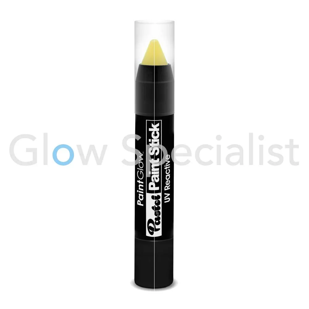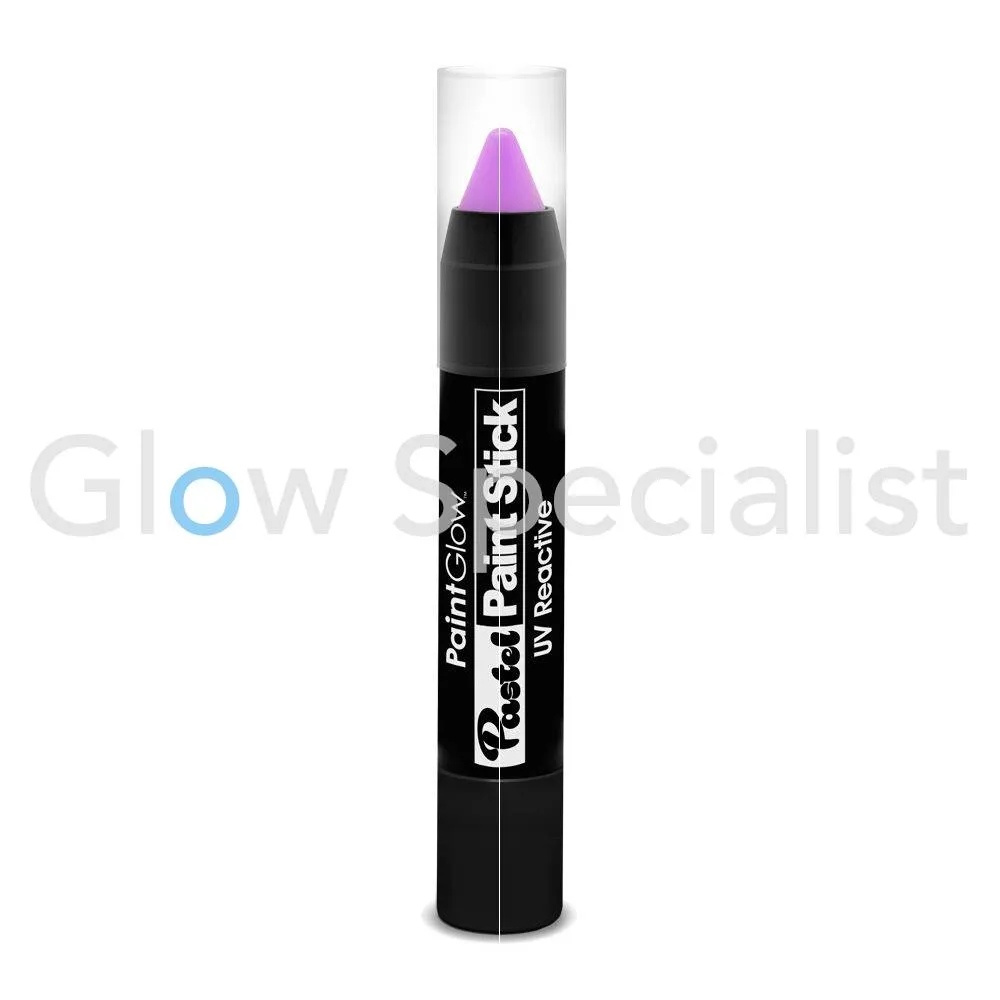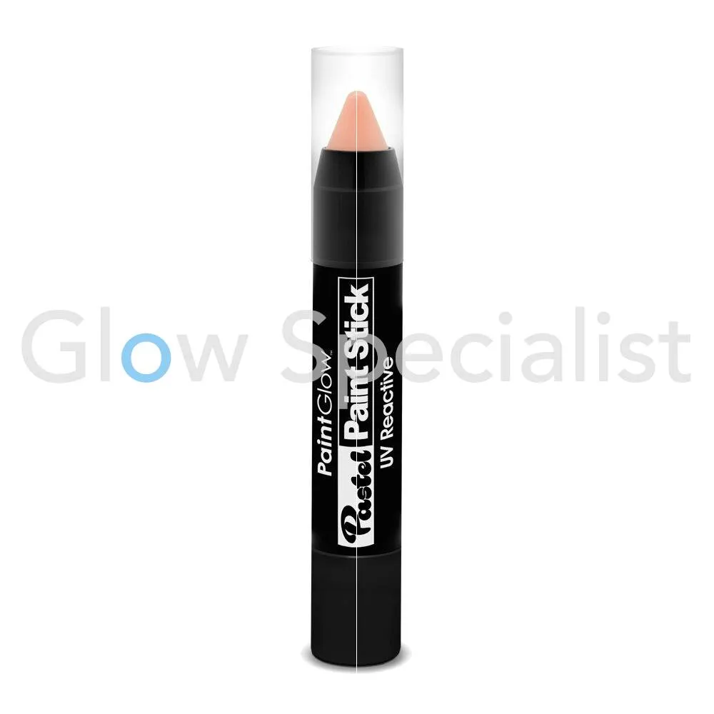 Naast de tubes mat pastel shades verkopen we nu ook PaintGlows UV Pastel Paint stick. Paint Sticks tekenen en schrijven vloeiend en zijn perfect om make-up aan te brengen of mee te bodypainten. In daglicht zijn het op je huid 8 zachte pastel kleuren die feller worden bij Blacklight. Het gladde krijtje glijdt over je huid en maakt je ontwerpen vlekkeloos van beginners tot professionals.