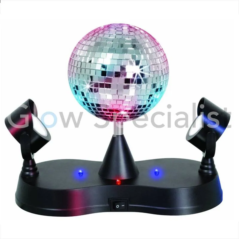 Dit model is erg populair en biedt een cool effect voor de gehele ruimte. De twee LED-spots en gekleurde LED-lampjes in de voet schijnen op de roterende spiegelbol.