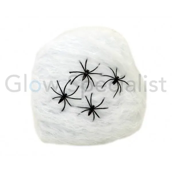 Met dit Halloween spinnenweb kun je je Halloween feest of evenement decoreren. Het web is rekbaar waardoor je het eenvoudig uittrekt tot de gewenste dikte / grootte. Als je er blacklight op schijnt, licht het web spookachtig op. Het web is gemakkelijk op te hangen aan bijvoorbeeld wanden of plafonds. Bij het web zitten 4 losse zwarte spinnen.