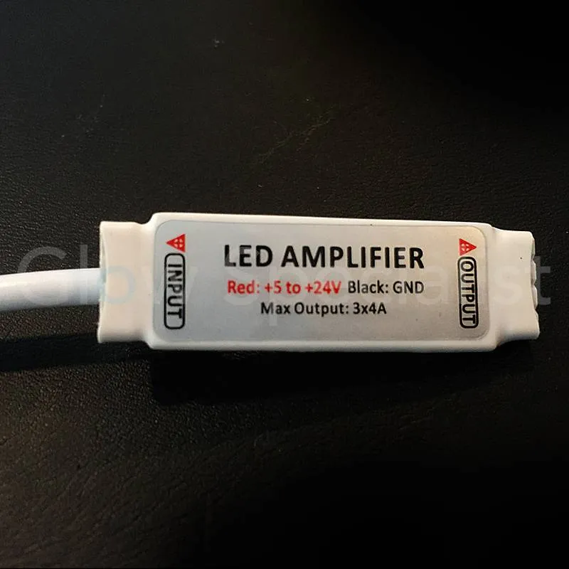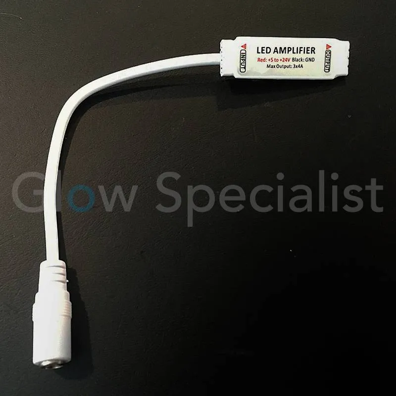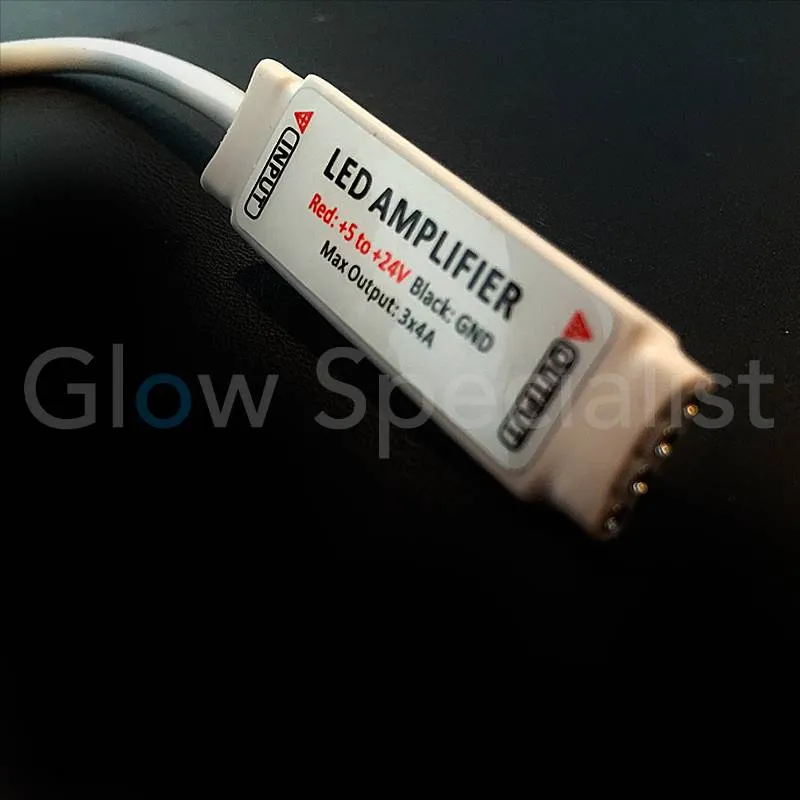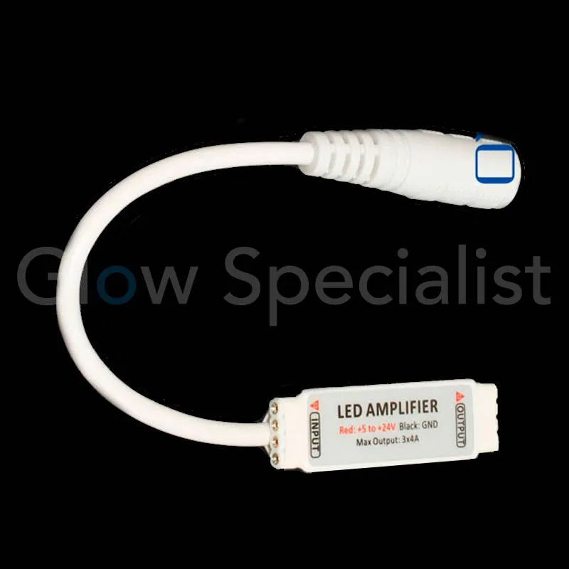 Versterk het signaal van uw RGB led strip met deze mini versterker. Direct aan te sluiten op al onze RGB strips zonder te solderen. Door een nieuwe toevoeging van stroom kan het signaal van uw strip oneindig verlengd worden!